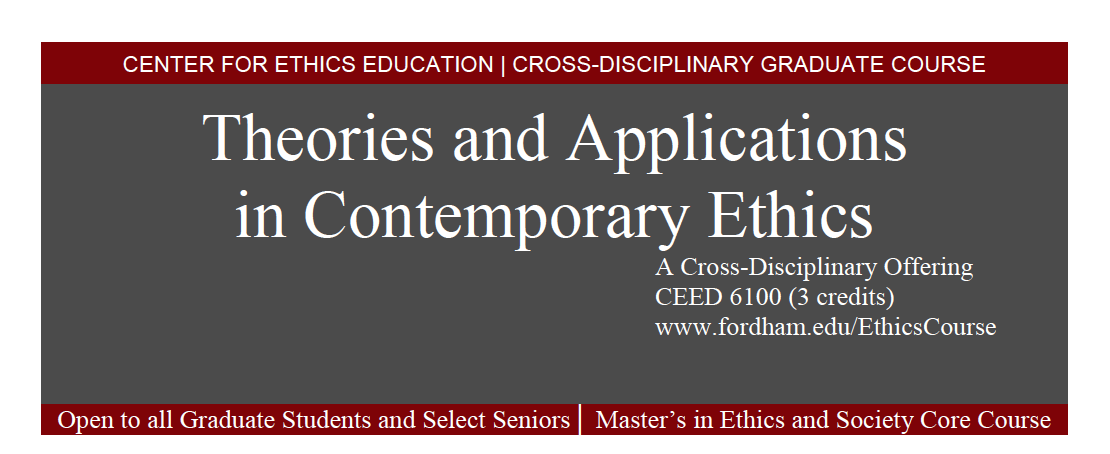 The Fordham University Center for Ethics Education is hosting a 3-day intensive cross-disciplinary graduate course entitled “Theories and Applications in Contemporary Ethics.” The course will take place next week, from May 19-21, 2015 on the Rose Hill campus.