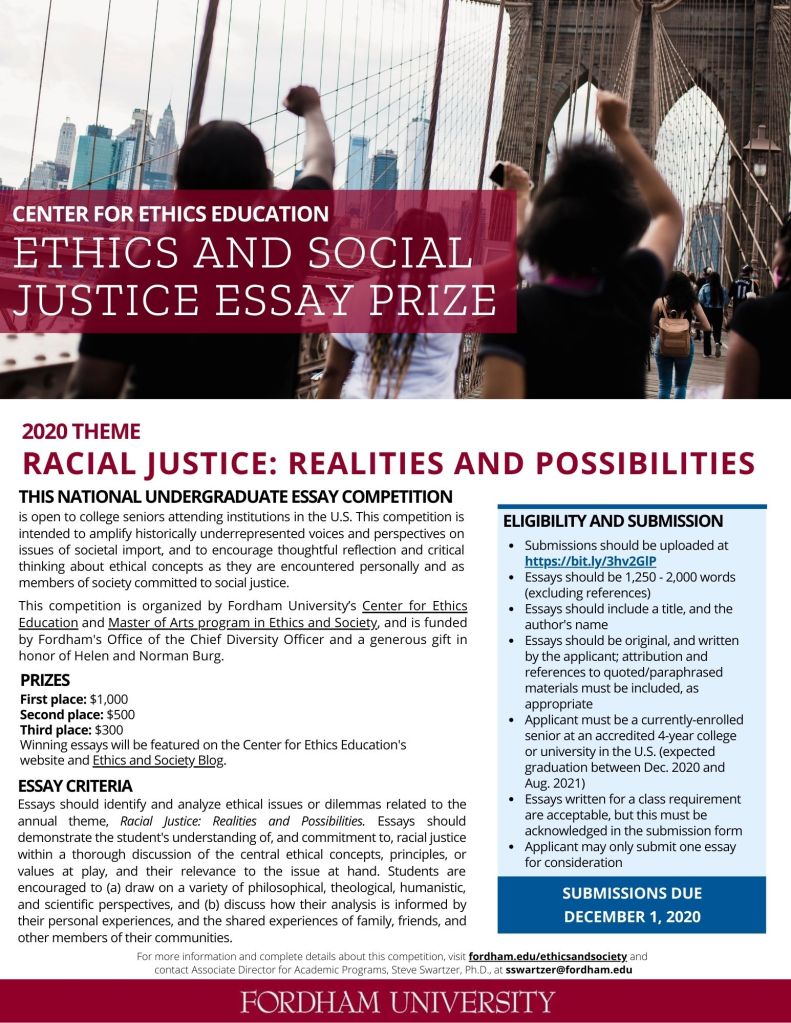 Fordham University Center for Ethics Education Ethics and Social Justice Essay Prize